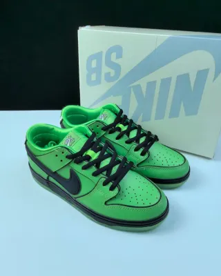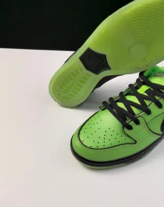Zapatillas Nike Dunk Low SB edición especial Powerpuff Girls en color verde. - Diseño inspirado en el personaje. - Detalles en negro. - Cordones negros.