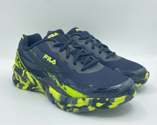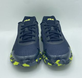 Zapatillas deportivas Fila con un diseño moderno y llamativo. Tallas disponibles 36-37-38 - Combinación de colores negro y verde neón. - Suela con diseño de camuflaje. - Cierre de cordones.