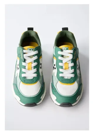 Zapatillas deportivas inspiradas en Minecraft. - Diseño con detalles en verde y blanco. - Cierre con cordones blancos. - Talla 37.