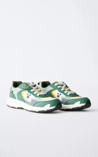 Zapatillas de estilo vintage de la marca Isteria. Un calzado con un diseño único. - Combinación de colores marrón y verde. - Detalle del logo de la marca en la lengüeta.