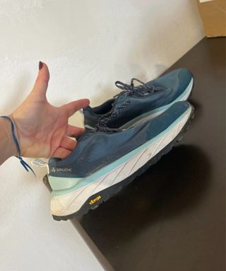 Zapatillas de senderismo Vaude con suela Vibram. Súper poco uso porque fue un regalo y me quedan justas - Diseño en color azul y verde. - Suela de goma Vibram para un agarre óptimo.