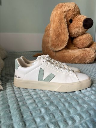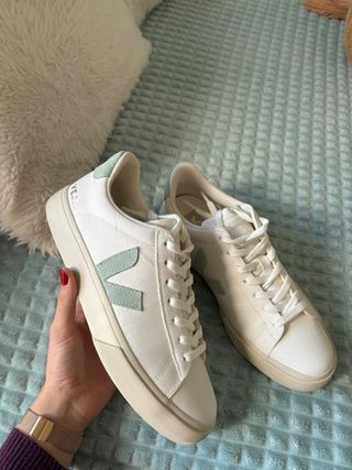Zapatillas Veja blancas con detalles menta