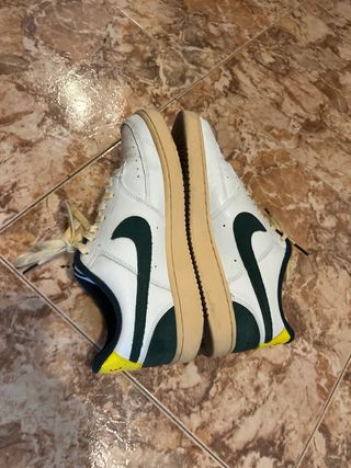 Zapatillas deportivas Nike Air Force 1. - Color blanco con detalles en verde y amarillo. - Logo de Nike en la plantilla. Originales solo usadas 3 veces