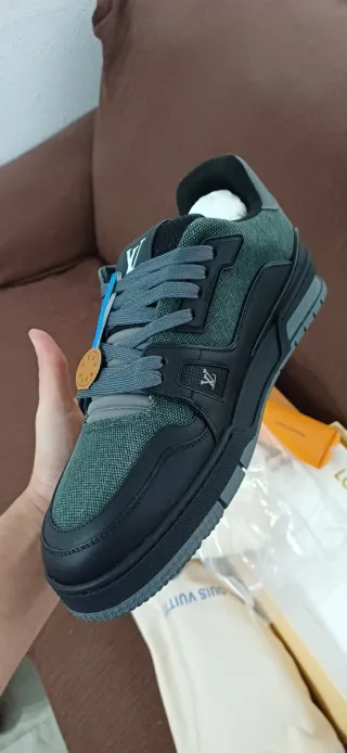 Zapatillas deportivas Louis Vuitton de estilo clásico. - Diseño moderno en negro y verde. - Detalle de logo de la marca. - La mejor calidad del mercado. Igual que el ...... Quedan 2 últimos pares. Talla 43. Envíame un mensaje directo para más detalles y fotos.