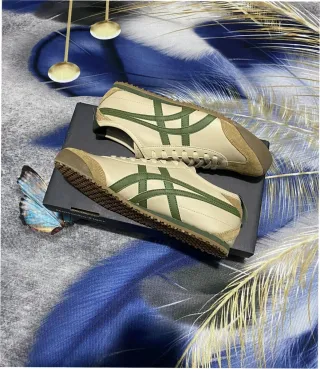 Zapatillas Onitsuka Tiger Mexico 66 en color beige y verde. - Diseño clásico y deportivo. - Suela de goma duradera. - Cordones para un ajuste seguro.