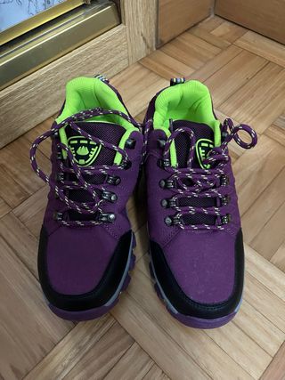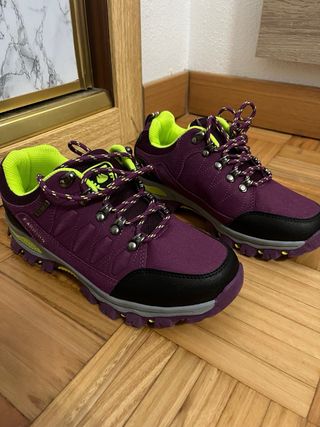 Zapatillas de trekking con un diseño moderno y funcional. Perfectas para tus aventuras al aire libre. - Combinación de colores verde y negro. - Materiales resistentes para mayor durabilidad. - Suela antideslizante Las compré d segunda mano para mi aita y me confundí d talla Tienen algún pequeño raspazo como se puede ver en las imagenes