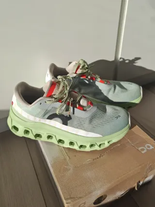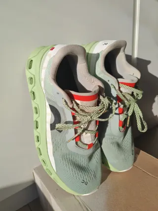 Zapatillas deportivas de la marca On Running. Talla 42 - Diseño en color verde y multicolor. - Modelo Cloud.