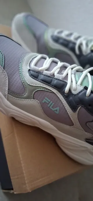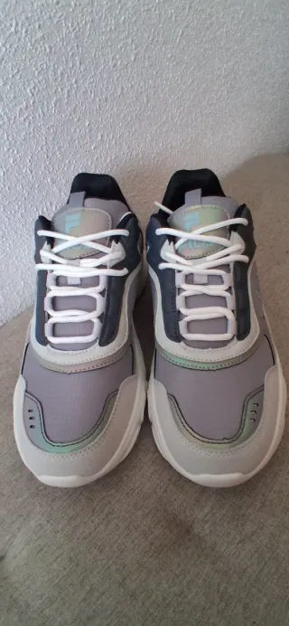 Zapatillas deportivas Fila para mujer, completamente nuevas. - Diseño moderno en tonos grises, morado, verde menta. Características del producto Cierre con cordones. Suela gruesa y cómoda. Tiempo: Lluvia Puntera: Redonda Forma del tacón: Plano Cierre: Cordones Detalles: Dibujo calado Función: Transpirable Extras: Puntera reforzada Suela exterior: Flex Plantilla: Acolchada