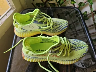 Zapatillas deportivas Adidas con un diseño llamativo. - Combinación de colores verde y amarillo. - Tejido de malla transpirable. - Suela de goma.