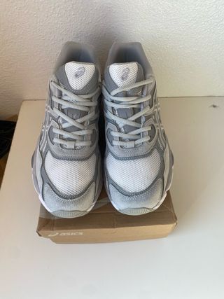 Zapatillas Asics Gel NYC en tonos grises con detalles en verde azulado. - Diseño deportivo y moderno. - Combinación de malla y ante. - Suela con tecnología Gel.