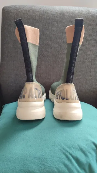 Zapatillas de la marca Duuo en talla 40 NUEVAS Precio real: 90€ - Diseño moderno con detalles en beige y verde. - Material textil elástico para un ajuste cómodo. - Suela blanca de goma con buen agarre.