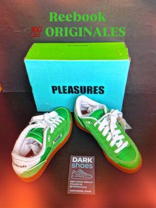 Reebok x Pleasures Club C bulc en color verde. Nuevas a estrenar, con caja original y etiquetas. Talla 41 EU. Modelo agotado en tiendas y difícil de encontrar. Materiales premium y diseño exclusivo de la colaboración Pleasures. Entrega en mano en Santander o envío rápido y protegido. Precio ajustado y negociable dentro de lo razonable.