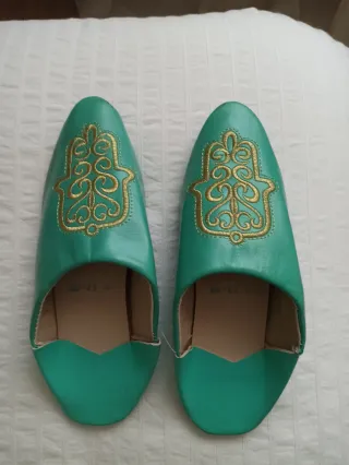 Zapatillas de Marruecos, sin estrenar, talla 41,con dibujo bordado en hilos dorados