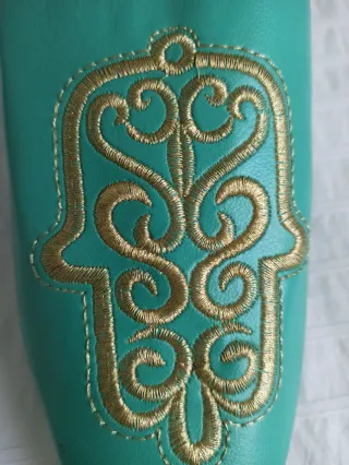 Zapatillas Marruecos, verde agua y bordados en oro