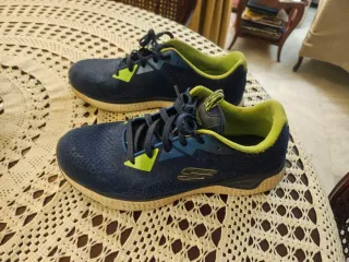 Zapatillas deportivas Skechers en talla 39. - Color azul y verde lima. - Suela con tecnología Goga Mat.