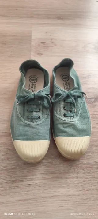 Zapatillas de la marca Natural World en color verde, talla 40. Están en perfecto estado, casi nuevas. - Fabricadas en Brasil. - Diseño ecológico.