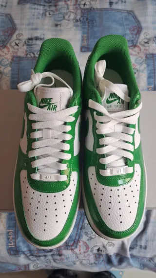 Zapatillas Nike Air Force con un llamativo diseño. - Combinación de colores verde y blanco. - Diseño icónico de Air Force.