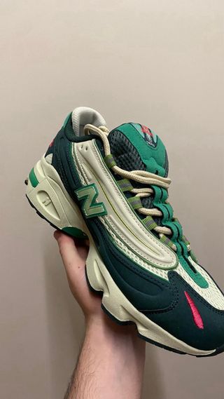 Zapatillas deportivas New Balance 1000. - Diseño en tonos beige y verde. - Detalle 1000 en color rojo. - Logo N característico de la marca.