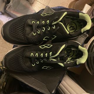 Zapatillas deportivas de la marca Arena en color negro con detalles en verde. Son de alta calidad y cómodas. - Diseño moderno. - Materiales resistentes. - Suela con buen agarre.