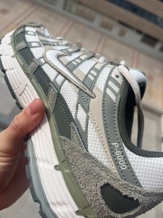 Zapatillas Nike P-6000 con un diseño retro y moderno. Combinan tonos blancos y verdes para un look distintivo. - Estilo P-6000. - Combinación de colores blanco y verde.
