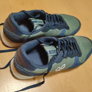 Zapatillas deportivas de la marca Silbon en talla 42. Combinan tonos azules y verdes con un diseño moderno. - Cierre con cordones. - Detalle en blanco del logo de la marca en el lateral. - Tela y cuero de ante. - Suela resistente.