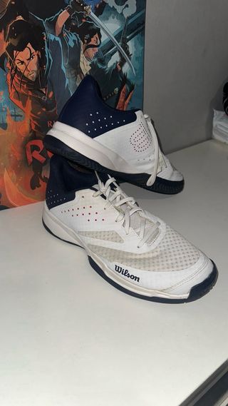 Zapatillas de pádel Wilson, ideales para jugadores profesionales. Están en muy buen estado y listas para usar. - Diseño moderno y ligero. - Suela resistente y duradera. - Perfecto para la cancha de pádel. - nuevas sin usar
