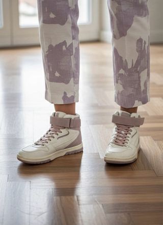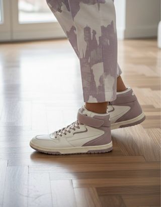 Zapatillas altas de Zara con un diseño retro y moderno. - Combinación de colores lila y crema. - Cierre con velcro en el tobillo. - Suela de goma. - Estilo de caña alta.