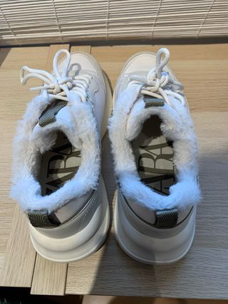Zapatillas de Zara en tonos beige y blanco, perfectas para un look casual. - Diseño moderno con detalles en contraste. - Forro interior suave y cálido con borrego. - Cierre con cordones para un ajuste seguro.
