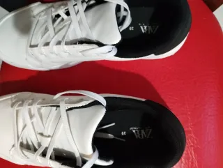 Zapatillas de la marca Zara en color blanco, en perfecto estado y como nuevas. - Diseño moderno y versátil. - Cierre con cordones. - Suela cómoda y resistente.