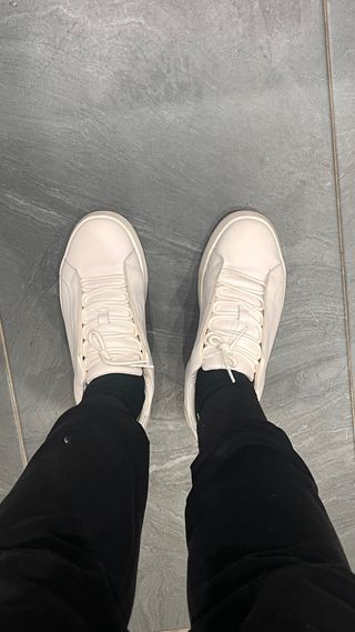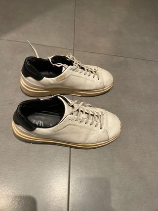 Zapatillas blancas de estilo casual para hombre. Están en perfecto estado, las he usado 3 veces porque me las regalaron y me quedan un poco grandes. Precio original 55,95 €, son debuena calidad. Tengo el ticket electronico de Zara así que sí te interesa puedo enviártelo. Entre las fotos teneis el modelo exacto.