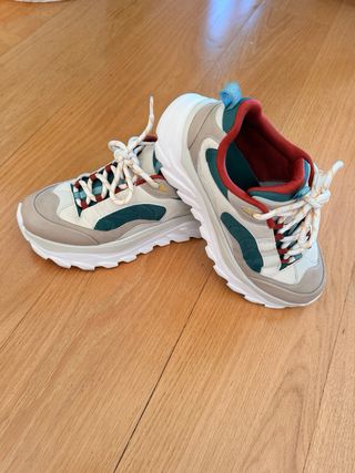 Zapatillas deportivas de la marca zara con un diseño moderno y llamativo. - Combinación de colores vibrantes. - Cierre con cordones negros. - Suela blanca y gruesa. - perfecto estado poco uso como nuevos