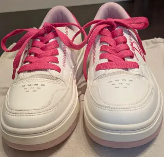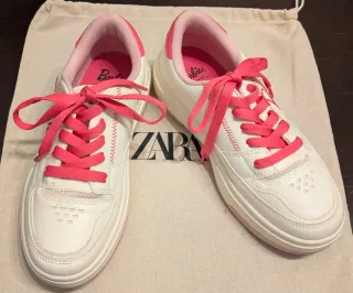 Zapatillas deportivas de la colección Barbie de Zara. - Diseño en color blanco con detalles en rosa. - Cierre con cordones. - Suela de goma.