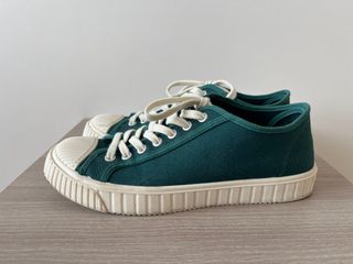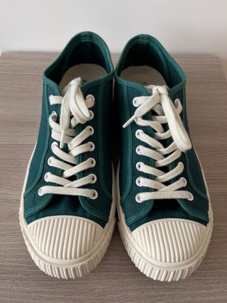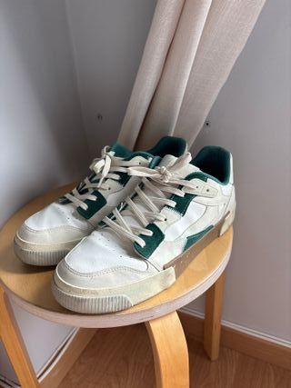 Zapatillas de la marca Zara en color verde botella. Perfectas para un look casual. - Cierre con cordones blancos. - Detalle de banda lateral en contraste.