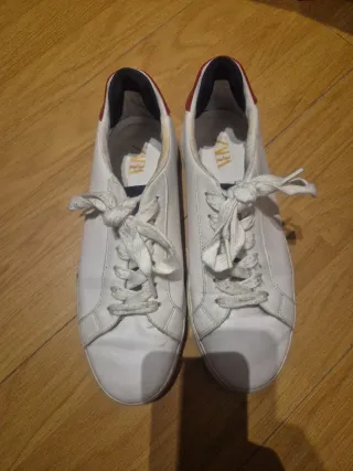 Zapatillas Zara talla 41 blancas y rojas. Muy poco uso aunque del roce del cordon hay un desperfecto en el inici de una lengüeta (ver fotos) SOLO SE HACEN ENVIOS