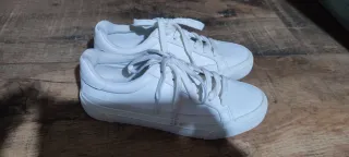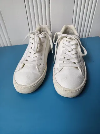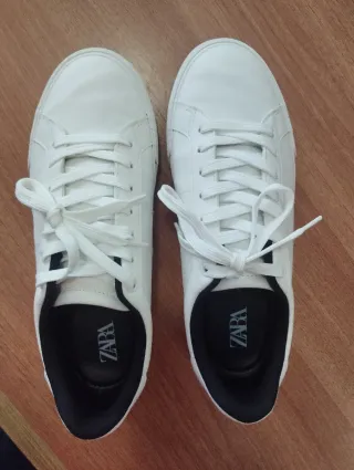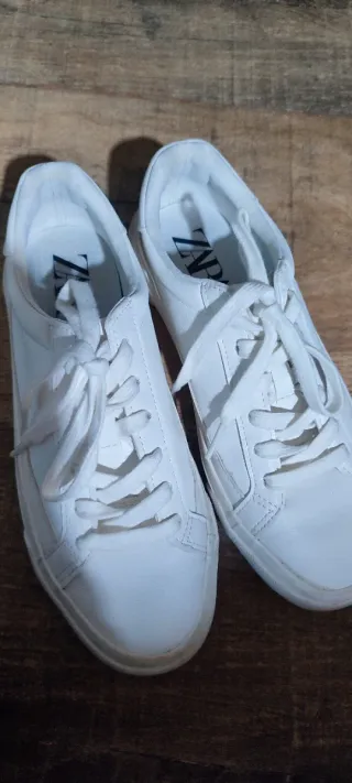 Zapatillas deportivas de la marca Zara en color blanco. Perfectas para el día a día. - Diseño moderno y cómodo. - Suela gruesa y robusta. - Cierre con cordones.