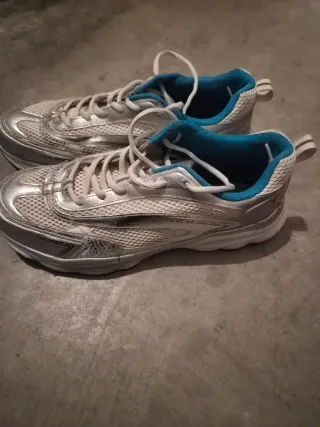 Zapatos de la marca Zara en color plateado. Nuevas.Se encuentran en su caja original.Y su bolsita,pero aún así,le han salido un amarillo en el talón,por dentro.Al ponerlas no se ve,evidentemente.Pero de ahí,su precio! - Diseño moderno y elegante. - Cierre con cordones.
