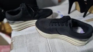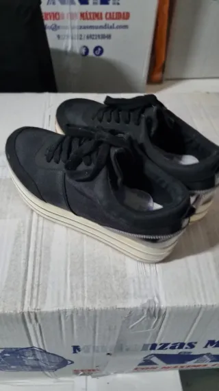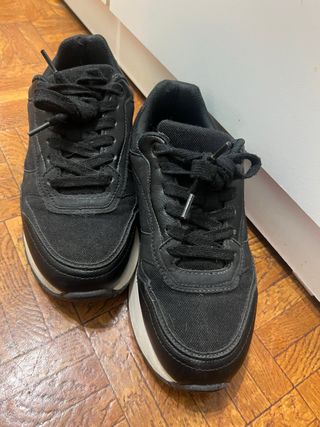 Zapatillas de la marca Zara en color negro. Un básico para tu día a día. - Cierre con cordones. - Detalle en la lengüeta. - Suela de goma. están bastante usadas y se nota en las puntas y el talón