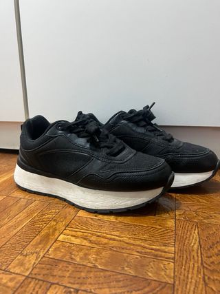 Zapatillas deportivas de la marca Zara en color negro. Perfectas para el día a día. - Cierre con cordones. - Suela de goma. - Diseño casual.