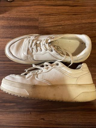 Zapatillas de Zara, muy poco usadas. Combinan tonos beige y blanco para un look moderno. - Diseño de plataforma. - Cierre con cordones.
