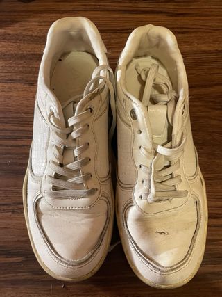 Zapatillas casual color blanco/crema. Suela en contraste azul y marrón. Perfecto estado. Solo los roces que se ven en la parte interior del talón.