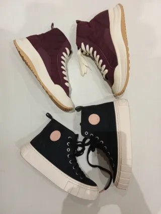Lote de dos pares de zapatillas altas. - Un par de zapatillas Victoria en color negro - Un par de zapatillas Zara en color Burdeos