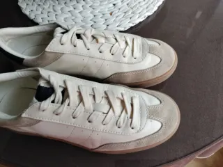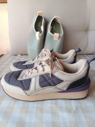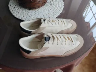 Zapatillas Zara de color beige, en perfecto estado. Solo se han usado una vez. - Cierre con cordones. - Detalle en la parte trasera. - Suela de goma.