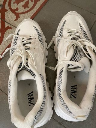 Zapatillas deportivas de la marca Zara, en color blanco y sin estrenar. - Diseño moderno con detalles de malla. - Suela gruesa y resistente.
