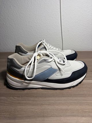 Zapatillas deportivas de la marca Zara. - Diseño moderno y versátil. - Combinación de materiales en el exterior. - Cordones con estampado llamativo. - Suela de goma resistente.