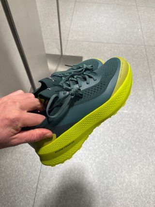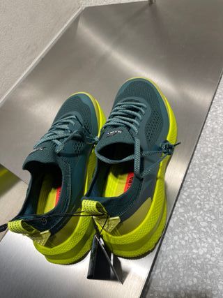 Zapatillas deportivas de Zara con un diseño moderno y llamativo. - Combinación de colores verde y amarillo. - Suela con tecnología SPUME FOAM V5.