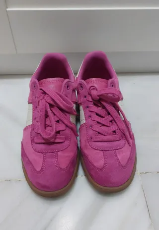 Zapatillas deportivas de Zara en color rosa y blanco. - Diseño de ante. - Detalle de franja lateral blanca. - Cordones a tono.