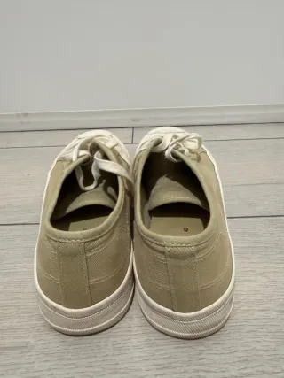 Zapatillas deportivas de color beige, en muy buen estado. Son ideales para cualquier ocasión. Son de ante. Horma redonda. Tienen cordones beige. - Son muy cómodas.