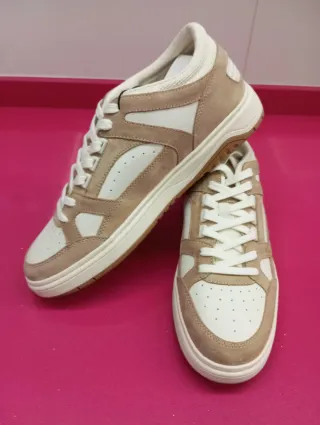 Zapatillas de moda con un diseño moderno y combinaciones de colores neutros. - Paneles en ante y piel sintética. - Detalle de perforaciones. - Cordones blancos. - Suela de goma. - Nuevas a estrenar no se a usado - No quedó presencial solo envio.