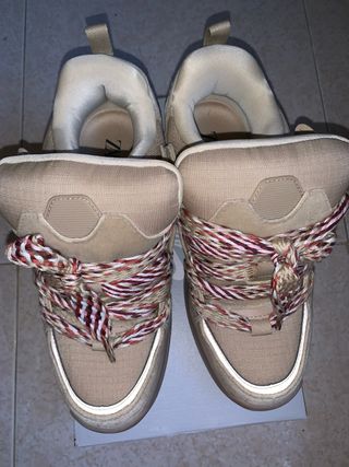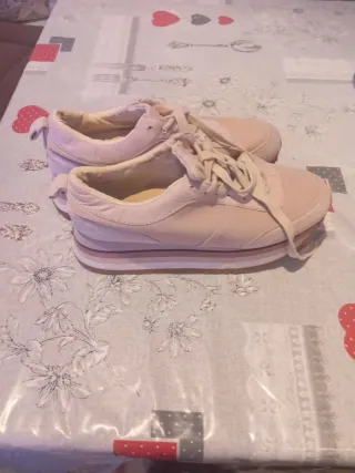 Zapatillas de la marca Zara en un bonito tono beige rosado. Perfectas para el día a día. - Diseño moderno con plataforma. - Cierre de cordones. - Material exterior de ante.