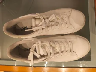 Zapatillas de la marca Zara en color blanco. - Diseño clásico y versátil. - Cierre con cordones. - Suela de goma.